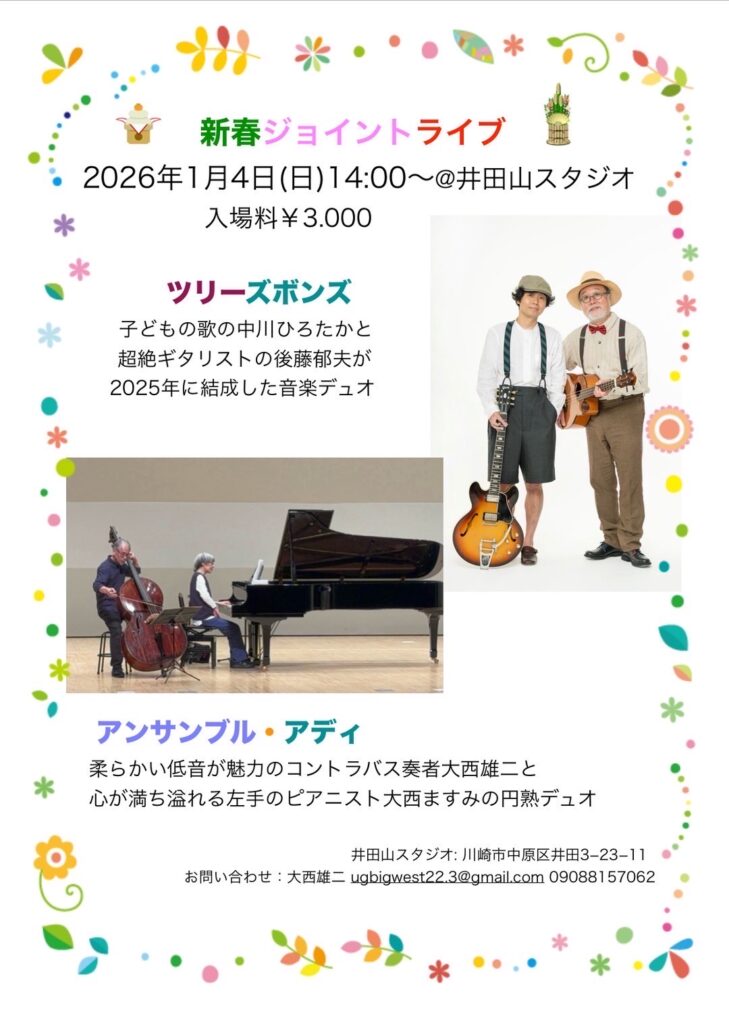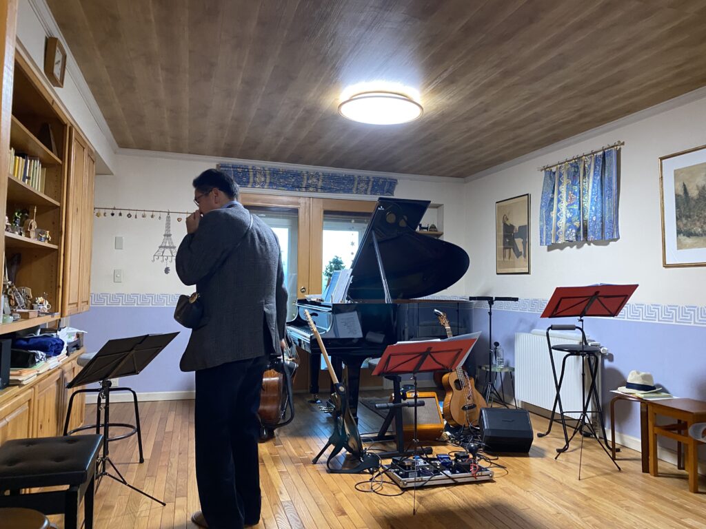 一曲目のブラームス冒頭からの大西先輩の柔らかな温かい音色に心を掴まれ、奥様・ますみさんの、それに添いながらも雄弁な左手のピアノに聴き入る。中川先輩とギターの郁夫さんの、軽妙で温かく笑いの絶えないステージにはいつもながら心躍り解れる。名曲「にじ」の他にも、大西先輩の思い出の曲である「とうすみとんぼ」を両ユニットのアンサンブルで聞けたのは嬉しい。また、大西ご夫妻のために書かれた平本正宏さんの「Journey with you」は圧巻だった。。