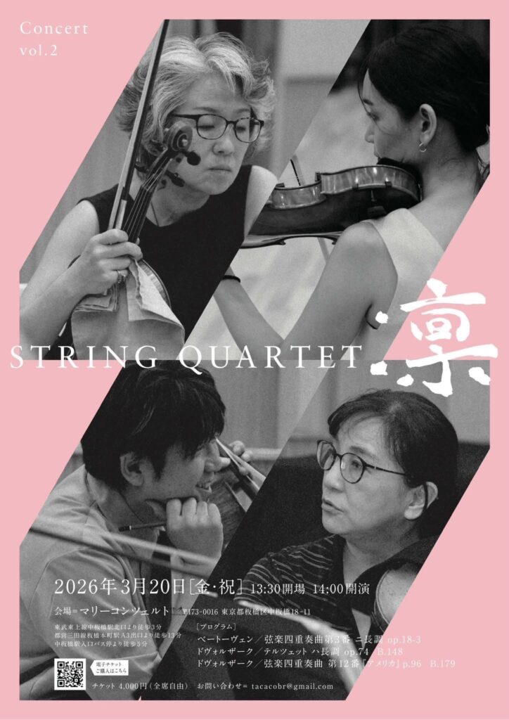 いよいよ明後日。ということで、String Quartet 凛、最終リハでした。ベートーヴェン初期とアメリカ、とパッと見は軽やかなプログラムですが、なんのなんの。あいだに挟まるテルツェットの、可愛らしい名に似合わぬ大曲ぶりも相まってなかなかの重量感。お楽しみいただけることと思います。ぜひ、おはこおびくださいませ。お待ちしております! https://teket.jp/15717/60282