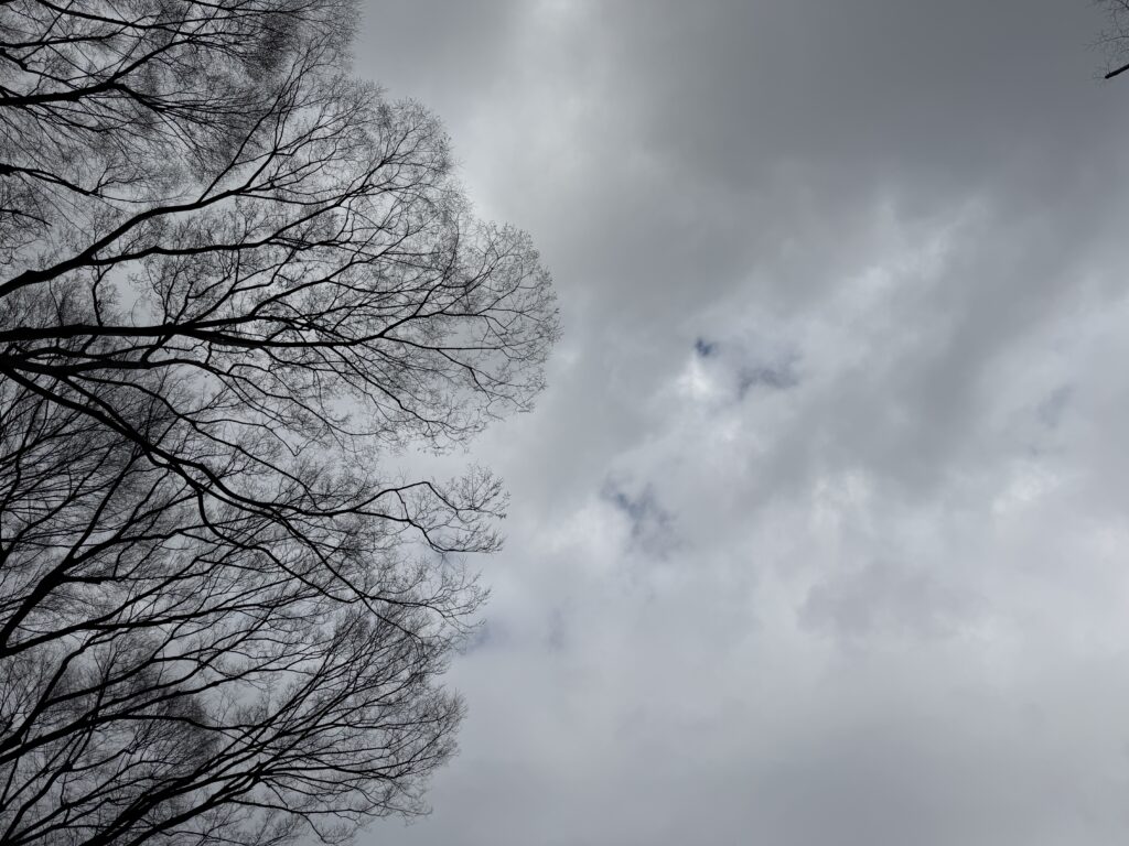朝はお散歩。曇り空もちょっと春めいて。。。